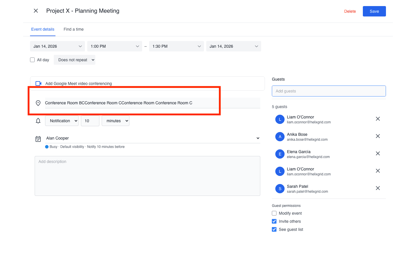 A common pattern is modifying the correct entity but applying the wrong operation. For example, in a meeting modification scenario, the agent attempted to change the meeting location to “Conference Room C” but appended the new location instead of replacing the existing value. The agent then declared the task complete without checking whether the final state matched the requirement.
