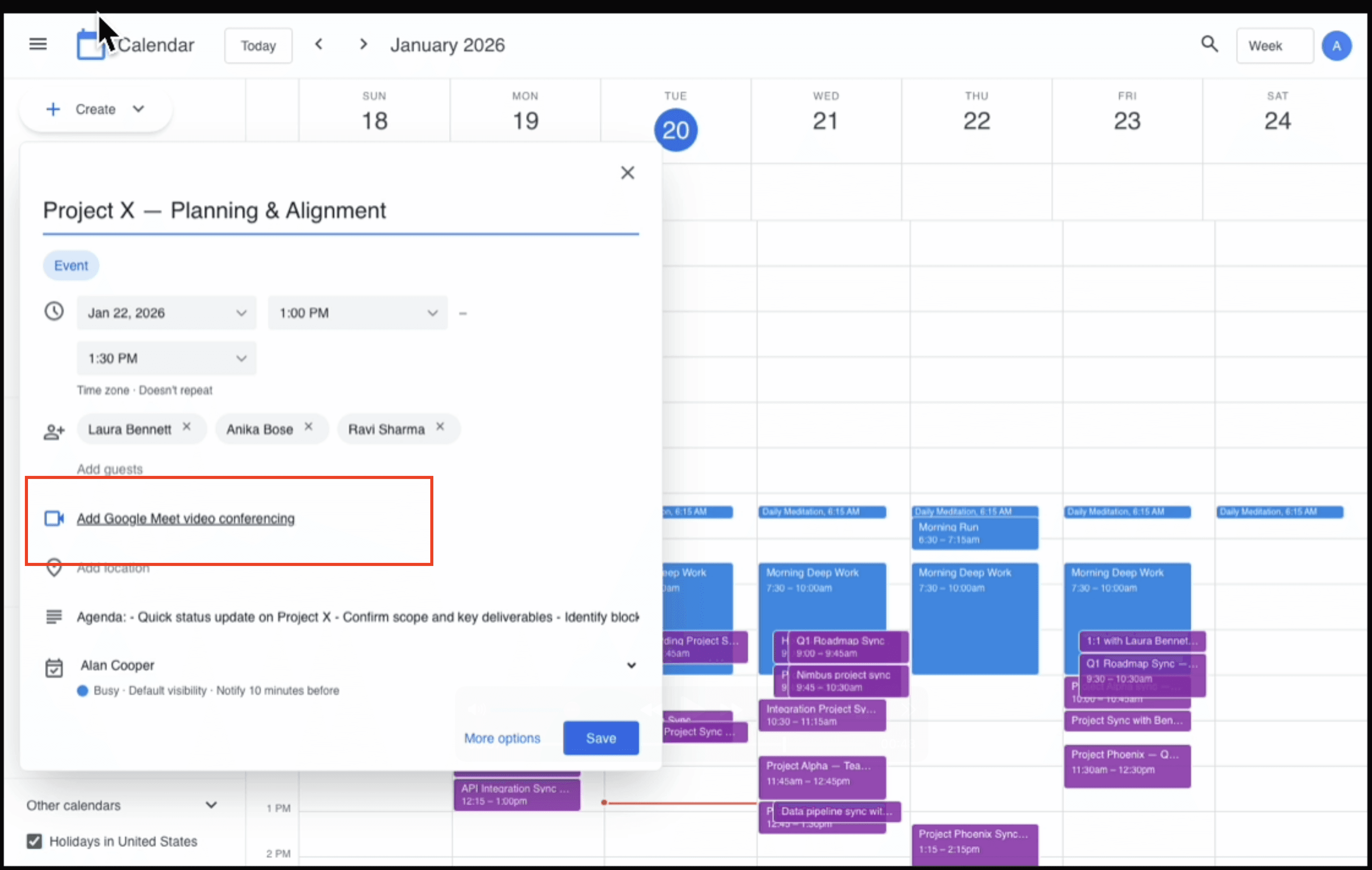 The example above shows one of the scenarios that requires the agent to find a new slot for an existing event. Gemini 3 Pro does everything else correctly but forgets to add the Google Meet link in the invite.